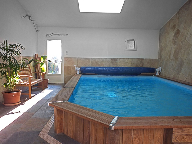 Piscine intérieure chauffée – Profitez d’une piscine privative de 530 x 330 x 140 cm , accessible directement depuis le séjour ou la terrasse. Son eau maintenue à 29-30°C promet des instants de relaxation en toute intimité.